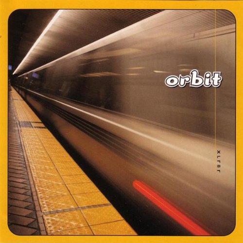Image: The album cover for Xlr8r, depicting a fast-moving train in a subway tunnel, with the artist name "orbit" visible on the right side of the image. The image conveys motion and speed.