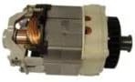 An image showing the Flymo Genuine 5119164-00/1 Motor, a replacement part for the Power Compact 400 lawnmower. The motor features a copper-wound stator and rotor assembly, with a black fan and drive shaft visible on one end, and electrical connections on the other.
