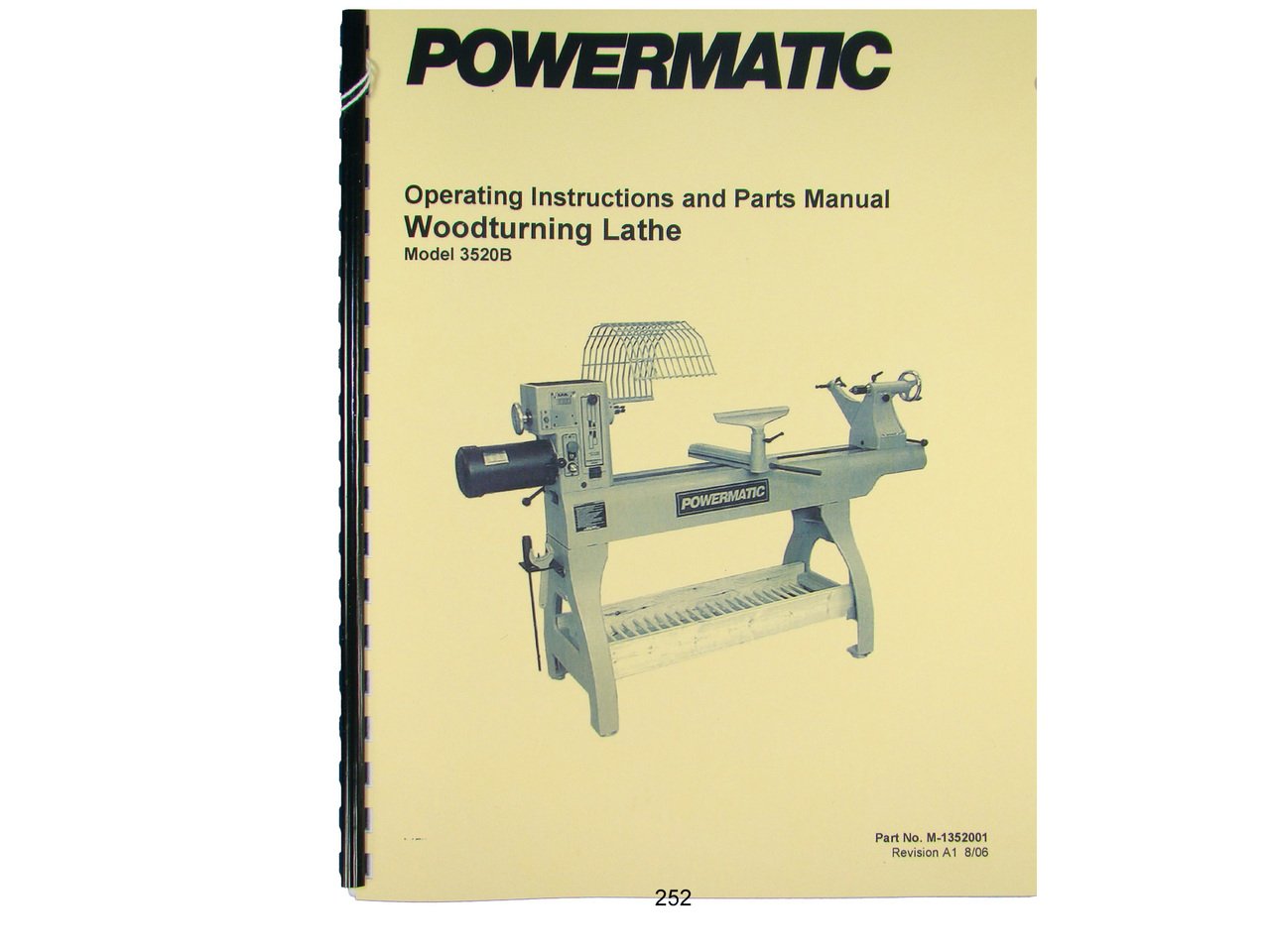 A comprehensive "Parts List" is included to assist with identification and ordering of replacement components for your Powermatic Model 3520B Wood Lathe. This section typically includes diagrams and part numbers for all major and minor components.