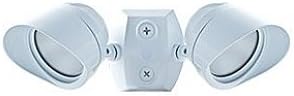 Image: RAB Lighting LED Bullet Flood 2x12W Adjustable Dual Heads fixture in white finish. This image shows the two adjustable LED floodlight heads attached to a central mounting base.