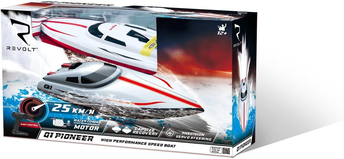 Figure 2: The SYMA Q1 Pioneer RC Boat, showcasing its sleek design and "Q1" model designation.