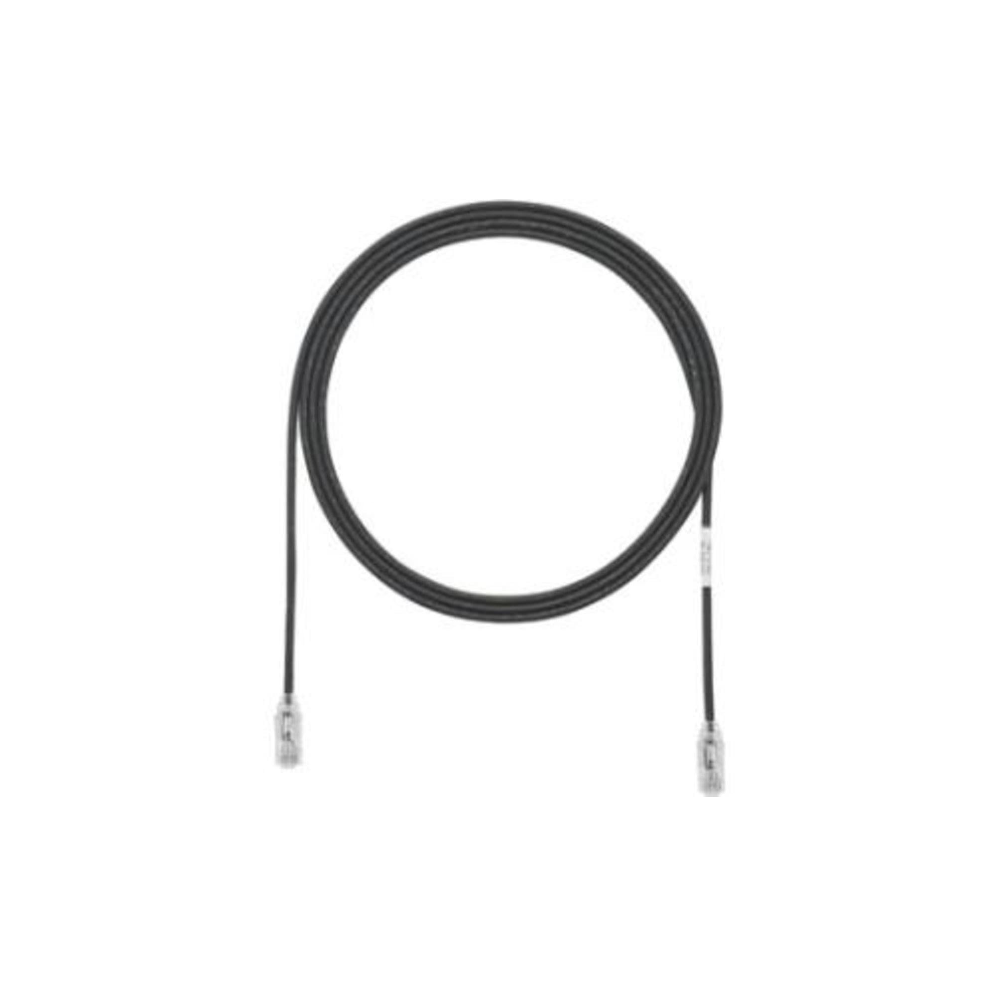 Figure 1: Panduit TX6-28 Cat 6 Patch Cord. This image displays the black patch cord coiled, with an RJ45 connector visible at each end.