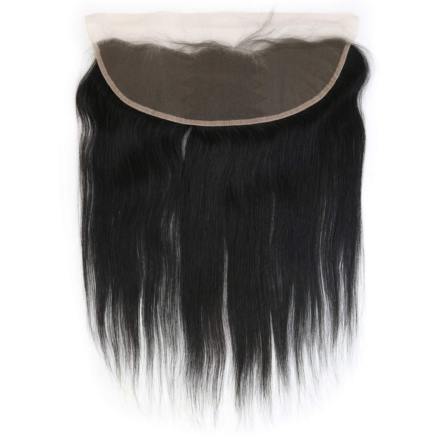 The SAGA Lace Frontal Closure is crafted from 100% human Remy hair, offering a natural look and feel. It features a 13"x4" hand-tied lace base designed to blend seamlessly with your scalp, providing a realistic hairline. This specific model is the Yaky texture, 12 inches in length, and comes in #1B Off Black color.