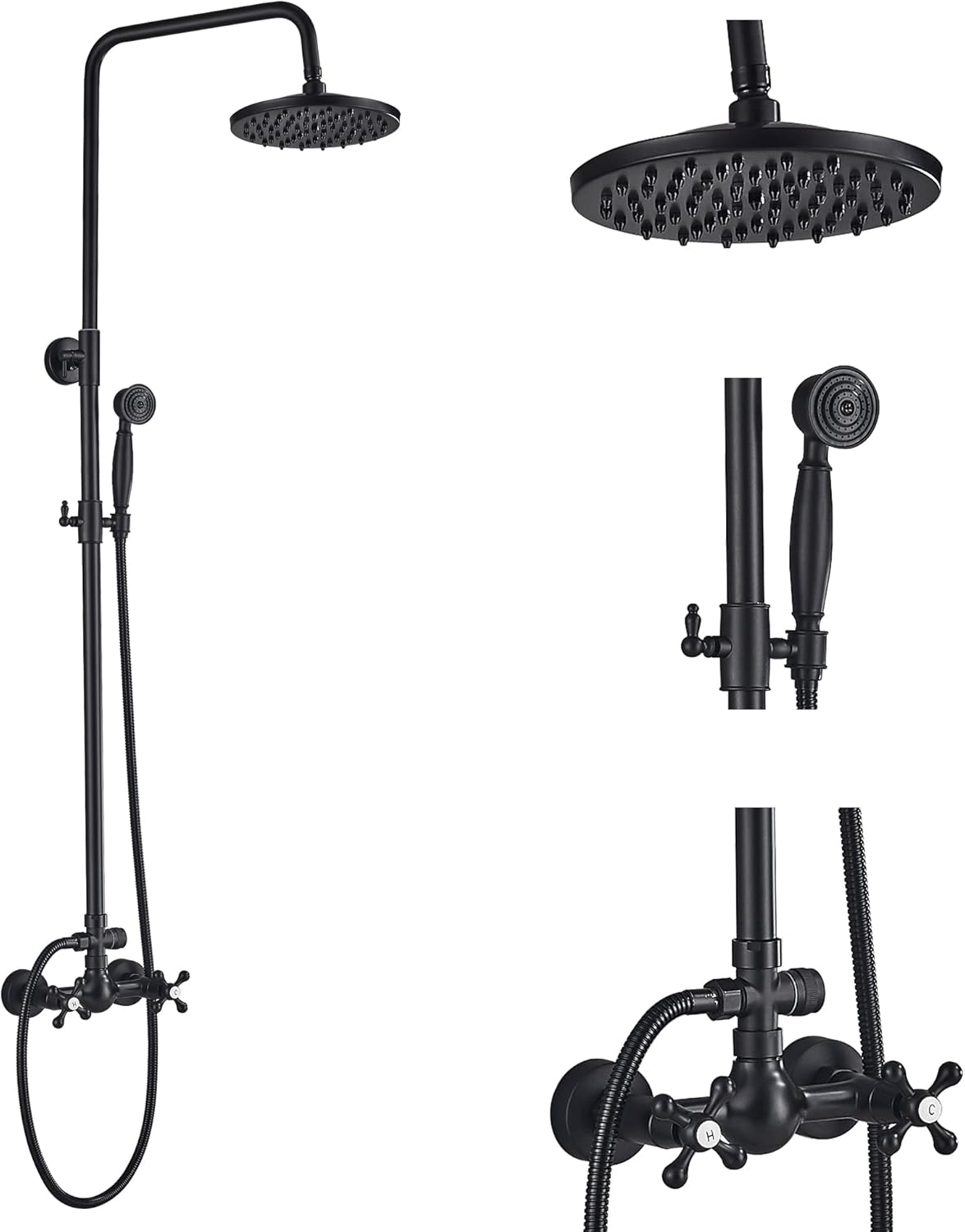 Figur 1: Overview of the Votamuta Wall-Mounted Shower System in Oil-Rubbed Bronze finish, featuring an 8-inch rainfall shower head and a handheld sprayer.