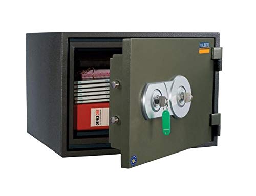 The Valberg FRS-32 KL is a compact, fire-resistant safe designed for secure storage of valuable documents and items. It features a robust metal construction and is equipped with two key locks for enhanced security. Its fireproof capabilities provide protection against high temperatures, making it suitable for safeguarding important papers and digital media.