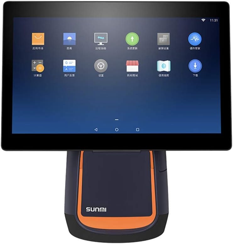 The SUNMI T2 terminal integrates a high-resolution display, a powerful processor, and a thermal printer into a single unit. Key components include: