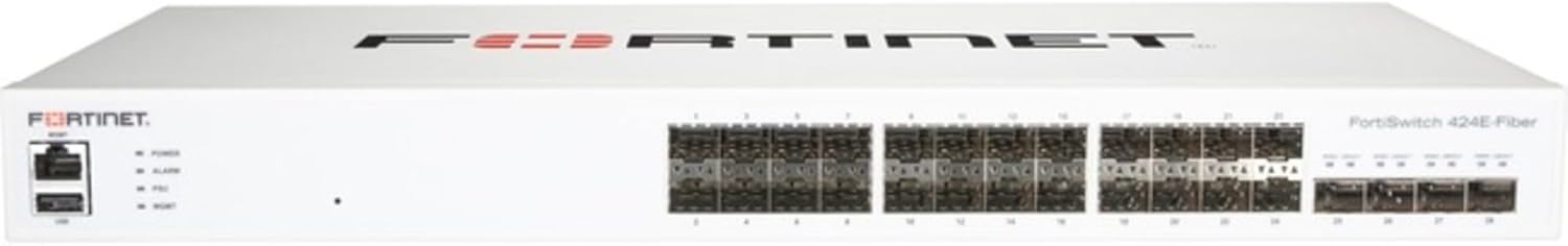 FortiSwitch 424E-FIBER er en højtydende Layer 2/3 Ethernet-switch designet til virksomhedsnetværk. Den har 24 Gigabit Ethernet SFP-porte og 4 10 Gigabit Ethernet SFP+ uplinks, der tilbyder fleksibel tilslutning og højhastigheds dataoverførsel. Denne switch er kompatibel med FortiGate switch-controllere, hvilket muliggør centraliseret administration og integration i en Fortinet-sikkerhedsstruktur.