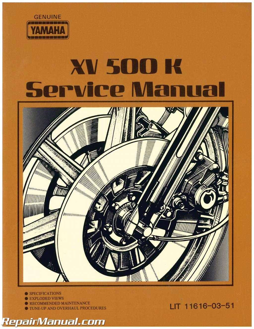 This manual is a reproduction of the original 1983 Yamaha XV500K Virago Motorcycle Service Manual. It provides comprehensive, step-by-step instructions for service, repair, and maintenance procedures specific to the 1983 Yamaha XV500K Virago motorcycle. It is designed to be a practical resource for technicians and owners, featuring a lay-flat binding for ease of use on a workbench.