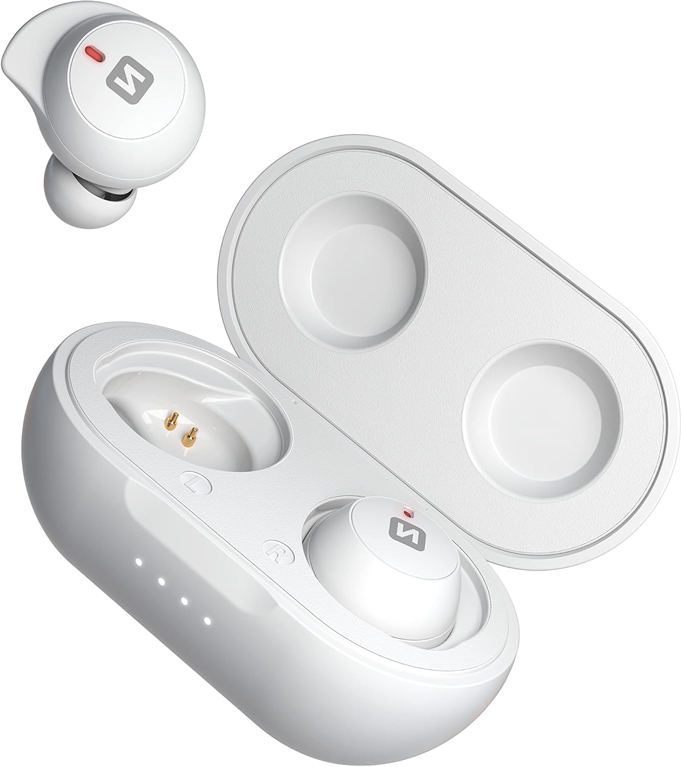 The SWISSTEN Stonebuds offer extended listening time with their portable charging case.