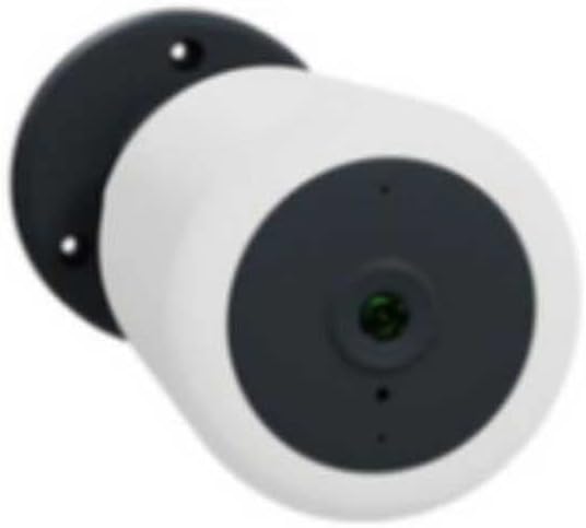 Figure 1: Wiser Outdoor IP Camera CCT724319. This image shows the camera's white cylindrical body, a dark grey front panel housing the lens, and a black mounting base with two screw holes for secure installation.