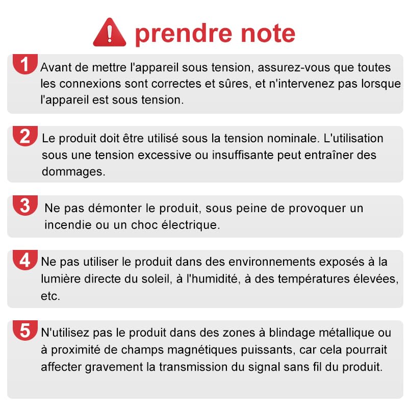 - Avoid using the product in areas with metallic shielding or near strong magnetic fields, as this could severely affect the product's wireless signal transmission and performance.