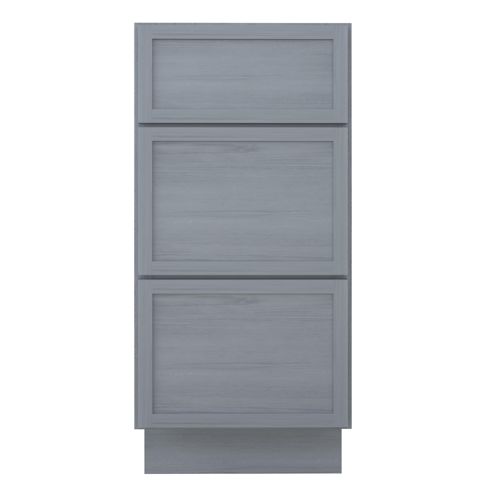 This 15-inch vanity cabinet is constructed from premium Solid Birch and Plywood, designed for durability in humid bathroom environments. It features three dovetail drawers for ample storage and smooth, soft-closing operation.
