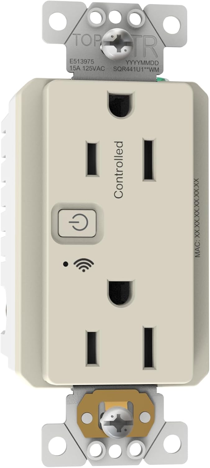 - Top Receptacle: This outlet is controlled by the smart features (app, voice, schedule).