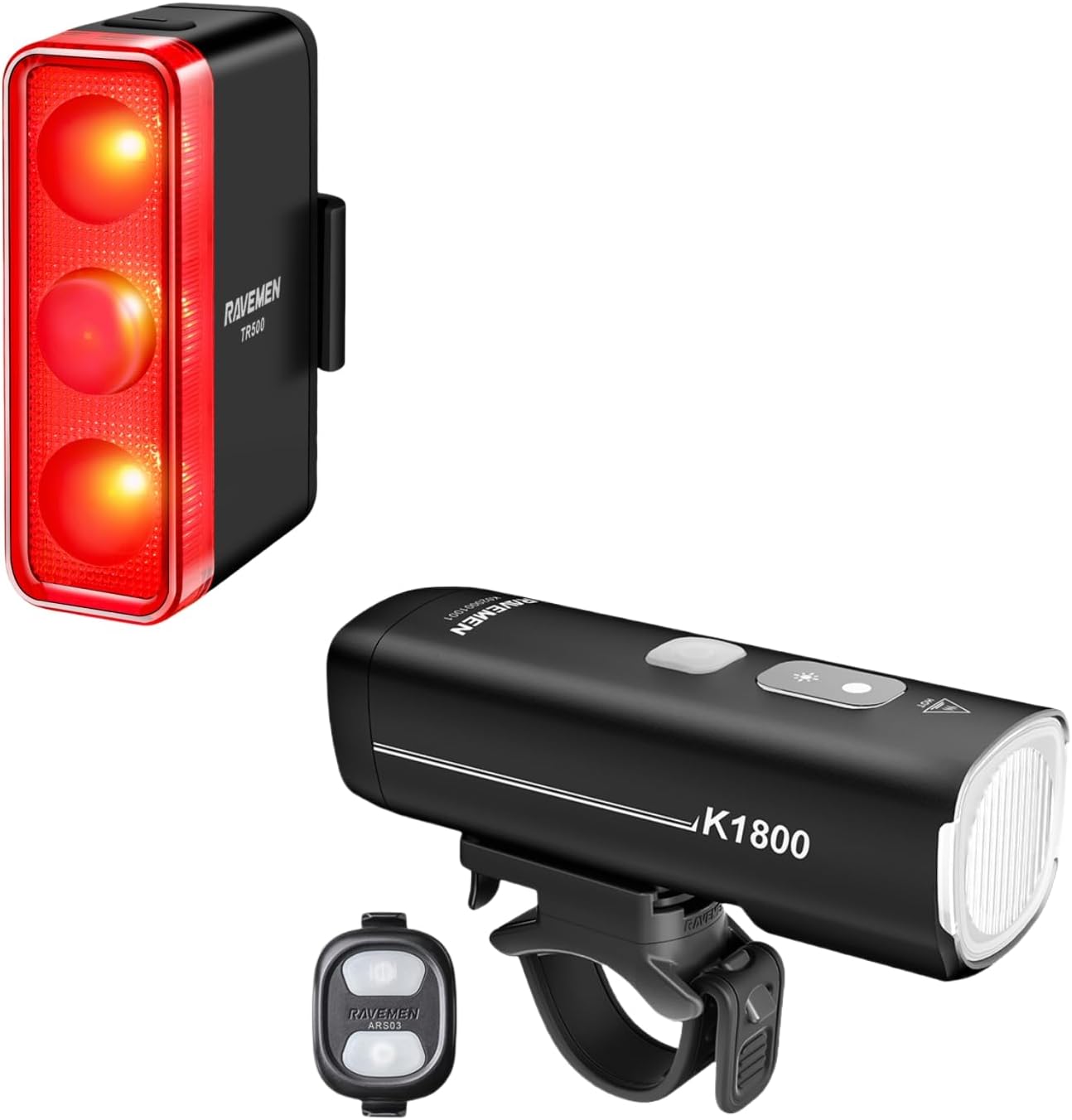 This manual provides detailed instructions for the RAVEMEN Bike Lights bundle, which includes the K1800 Bicycle Headlight and the TR500 Bike Tail Light. This set is designed to enhance visibility and safety for various cycling activities, including city commuting, road cycling, mountain biking, and urban riding. Please read this manual thoroughly before using the product to ensure proper operation and maintenance.