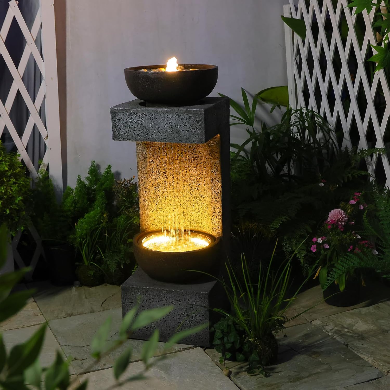 The SERBILHOME Waterfall Fountain is a modern outdoor and indoor water feature designed to enhance your living space with the soothing sounds of flowing water and integrated LED lighting. Crafted from durable resin, this 33.9-inch tall fountain features an elegant bowl and minimalist base design, creating a tranquil ambiance for courtyards, backyards, patios, porches, or even indoor meditation rooms.