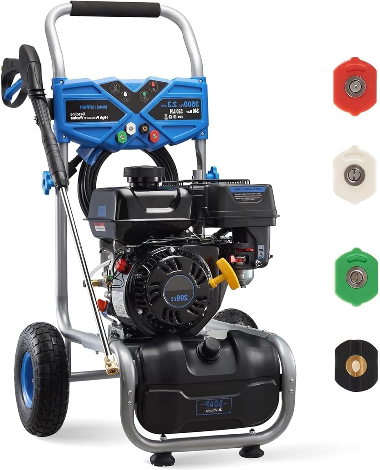 Figure 1: HUSHLIGHT Gas Pressure Washer, 3500 PSI 2.3 GPM, with 209CC Engine and accessories.