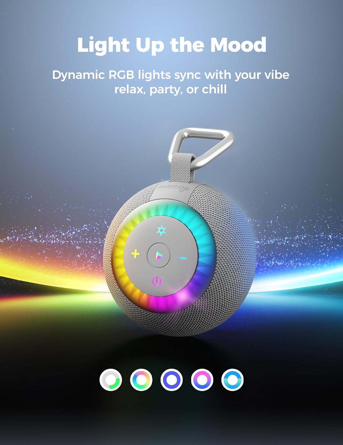 - Removable Nano Silicone Suction Cup: The speaker features an upgraded nano silicone suction cup with a vacuum exhaust knob, providing strong adhesion to smooth surfaces. The suction cup is washable and reusable, maintaining its effectiveness after drying.